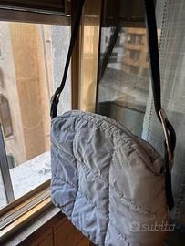 Vendesi borsa in piumino trapuntato grigia con tracolla nera. Si chiude con la zip ed internamente ha una tasca che si chiude. Borsa capiente. Mai usata.