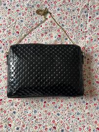 Borsa con tracolla a catenina in vernice trapuntata nera. Nessun segno di usura in quanto non è mai stata utilizzata.
