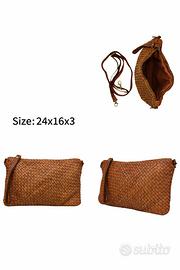 Elegante e sofisticata, questa pochette da donna in pelle intrecciata è l’accessorio perfetto per valorizzare ogni look. Realizzata in vera pelle di alta qualità, si distingue per la raffinata lavorazione intrecciata che dona carattere e unicità al design. Compatta ma funzionale, è ideale per custodire l’essenziale con stile, sia durante eventi serali che nelle occasioni speciali. La cura dei dettagli e la morbidezza della pelle rendono questa pochette un accessorio senza tempo, capace di unire artigianalità e modernità.