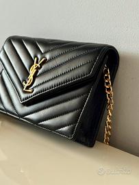 Pochette YSL Yves Saint Laurent mini borsa a spalla, in pelle nera, pari al nuovo, con tracolla. Misure 19 x 12 altezza x 4 profondità