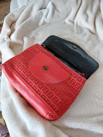 borsa Fendi vintage tessuto rosso e finiture in pelle.