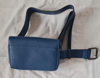 Borsa pochette monospalla o da vita in pelle resistente saffiano blu NUOVA