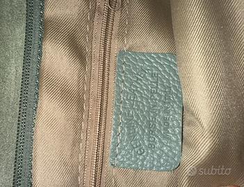 La tracolla può essere tolta e può essere portata anche a mano come pochette. Colore verde acqua.