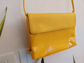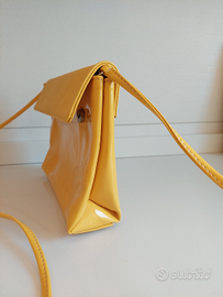 Propongo borsetta pochette usata una sola volta dalla mia compagna (per abbinamento di colore alla festa di laurea) pari al nuovo, impercettibili segni per averla appoggiata qualche volta male immagini sono esplicative. Circa 25cm x 15 con parte inferiore vernice lucida e superiore pelle goffrata stile "coccinelle", con 3 vani interni di cui il centrale con cerniera. Anche ritiro a mano Alpignano o Aosta