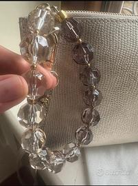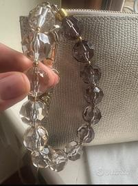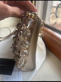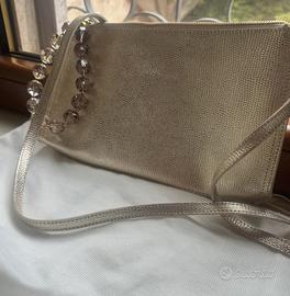 Borsa /pochette Roberta Gandolfi acquustata e indossata solo una sera. Borsa in pelle originale color oro made in italy . Manico con pietre da portare a mano/polso con tracolla . Foderata internamente . Misure: larghezza 28 cm, altezza 18 cm profondita 4 cm. Il manico gioiello la rende una chicca.