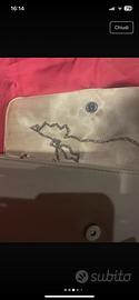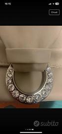 Borsa pochette strass e catenella beige. Interno in raso. Nuova. Elegante e preziosa. Pelle morbidissima
