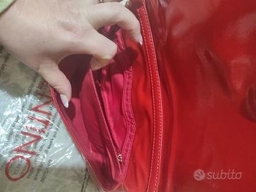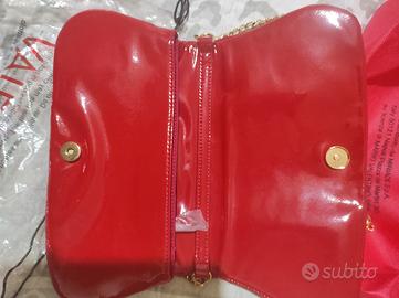 Bellissima borsa pochette Valentino bag in vernice rossa con tracolla color oro due scomparti interni. Incluso sacchetto cellofan con scritto Valentino e borsa in stoffa rossa Valentino.
