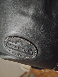 Borsa pochette in vera morbida pelle di vitello colore grigio interno in pelle tasca con cerniera.