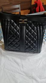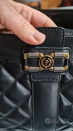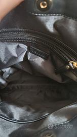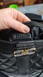 Borsa Pollini a spalla nera con tracolla in metallo dorato.