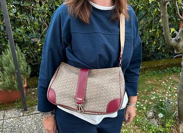 Splendida borsa originale Pollini, nuova e mai utilizzata, è ideale per chi ama accessori distintivi e di qualità. Realizzata in tessuto beige impreziosito da iconiche scritte marroni, è arricchita da raffinati dettagli in pelle color bordeaux che donano un tocco di classe e originalità. Il design è elegante ma allo stesso tempo pratico, perfetto per completare sia look casual che più ricercati. Capiente e funzionale, è l’accessorio perfetto per accompagnarti durante la giornata con stile.