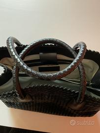 Borsa a mano Pons Quintana grande in pelle intrecciata nera dim 35*26*22