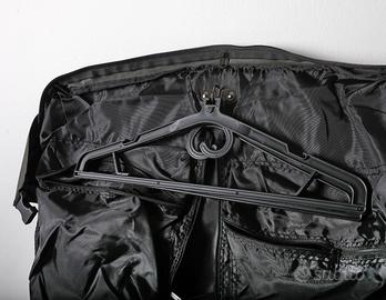 Valigia Porta Abiti Fila Sport Legacy, misura 62x45 cm , spessore da 8 a 20 cm, tessuto sintetico. È progettata per trasportare abiti, come giacche o camicie, distesi per evitare pieghe eccessive, e può essere piegata e trasportata tramite manici o una tracolla regolabile.