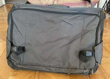 Borsa porta abiti da viaggio in tessuto tecnico impermeabile, multi tasche, pieghevole e munita di tracolla e manico. Tasche interne per riporre accessori di abbigliamento. Tasche esterne per oggetti vari e PC.