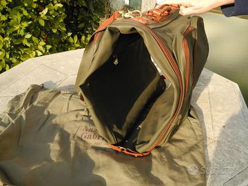 Borsa da viaggio porta abiti vintage Nazareno Gabrielli, nuova e mai utilizzata. Dimensioni da chiusa: 55x50 cm. Completa di custodia originale in tela.