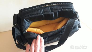 La borsa ha un'ottima imbottitura all'interno che protegge il contenuto da cadute o colpi e 4 tasche laterali oltre quella centrale. Praticamente nuova.
