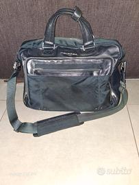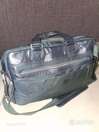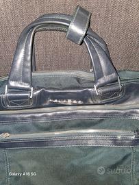 Borsa porta documenti Piquadro come nuova metà in pelle e metà in stoffa colore blu notte