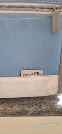 Borsa porta PC in tessuto, ideale per trasportare il tuo computer portatile. - Design moderno con tasca frontale. - Colori bianco e azzurro.