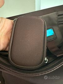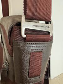 Borsa porta pc a tracolla con accessori e diversi scomparti in pelle e tela Piquadro in ottime condizioni.