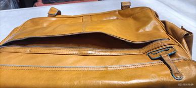 Porta PC in pelle originale Piquadro, colore senape, interno azzurro completa di tracolla. Usata ma in buono stato. non presenta strappi o tagli.