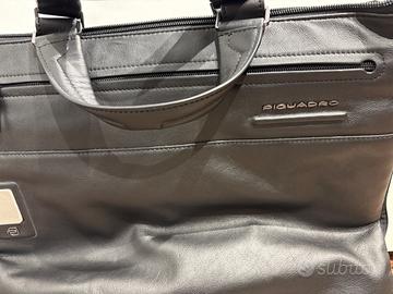 Borsa porta PC Piquadro codice OV2201 in pelle con grande tasca laterale e multiple tasce interne – fascia per aggancio al trolley – dimensioni 42x30 cm, spessore espandibile fino a 7 cm - originale – nuova mai usata – con tracolla e sacco contenitore