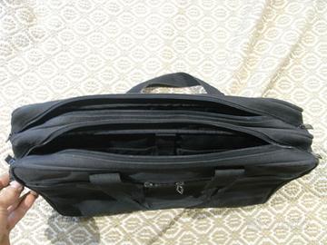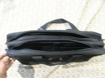 Borsa porta PC portatile,colore nero,doppio scomparto interno di cui uno estensibile,varie tasche porta documenti interne,2 tasche esterne con zip,dotata di maniglie per il trasporto e di tracolla.usata un paio di volte,come nuova nel vero senso della parola.