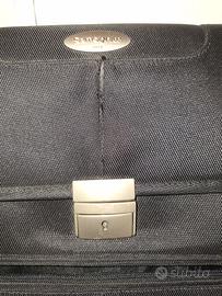 Vendo borsa porta documenti e PC originale Samsonite, linea business classica in nylon balistico ad alta resistenza. Molto capiente e ideale per il trasporto sicuro di laptop e documenti di lavoro. Con serratura (chiave inclusa), senza tracolla. Scucitura tra logo samsonite e serratura, per il resto in ottime condizioni