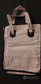 Borsa pratica per riporre le scarpe durante i viaggi. Realizzata in tessuto resistente, è ideale per mantenere l'ordine nel bagaglio. Design a doppio scomparto con sei sezioni adatte a 6 o più paia di scarpe. Manici per un facile trasporto. Chiusura con zip. Dimensioni cm 34 x 28 x 15. Nuova, mai utilizzata.