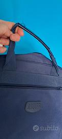 borsa colore blu porta libri o computer dotata di manici rivestiti in ecopelle e tracolla, porta una tasca sul davanti chiusa da cerniera