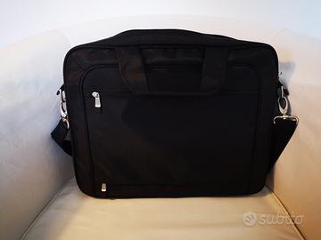 SVENDO Robusta borsa professionale originale DELL in cordura nera, portacomputer e/o documenti, con piedini antisdrucciolo, come nuova; misure 43x33x13. Comparto frontale 'svuotatasche' con zip; ricchissimo comparto multipurpose a soffietto con divisorio interno, 2 tasche a rete con zip e vari taschini; comparto centrale imbottito con fermi di sicurezza e divisorio interno; 2 tasche posteriori con zip; 2 maniglie morbide e tracolla con salvaspalle anticervicale. In combinazione regalo, in ottime condizioni: robusto borsotto originale Fennec coordinato in cordura nera, 4 tasche/scomparti, 30x27x19 e zaino blu navy 24/48 ore, leggero e ampio 46x34x17; taschino frontale con zip, ricca tasca multipurpose con contenitore a strappo e gancio portachiavi, 1 comparto centrale, 1 scomparto posteriore con 3 comparti; schienale e spallacci imbottiti; spallacci anteriori estensibili x carico esterno. TUTTO A SOLI 59 euro, D A V V E RO !
