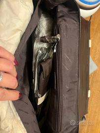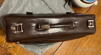Borsa portadoumenti in pelle marrone Pierre Cardin. Completa di tracolla. Mai usata. 43 x 28 cm.