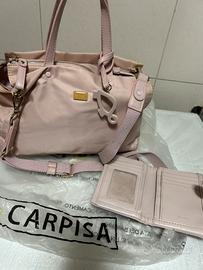 Borsa tracolla Carpisa color rosa confetto piu portafoglio in tonalita’ di rosa leggermente piu chiaro , ottima per primavera /estate .Articolo utiluzzato ma in ottimo stato .
