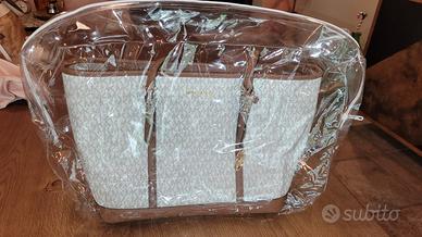Borsa grande originale Michael Kors molto capiente ma di peso super leggero con rispettivo portafoglio in coordinato. Usati pochissime volte. Con custodia protettiva.