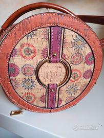 NUOVA realizzata con sughero ecologico e vegano, noto per la sua morbidezza e leggerezza .La forma rotonda e la vivace fantasia floreale/etnica la rendono un accessorio casual e alla moda. Include un cinturino in pelle regolabile per portarla a tracolla o a spalla e una chiusura con cerniera.