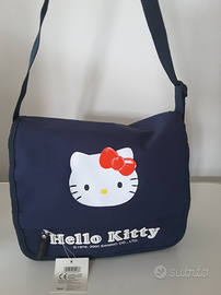Borsa postina Hello Kitty con tracolla regolabile, colore blu navy, nuova, mai usata.