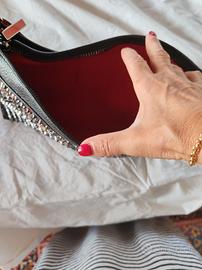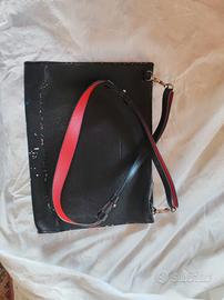 Vendo borsa modello postina, con tracolla, marca lobouten originale, con borchie e stampa sul davanti, misure 30 cm larghezza x22 cm, portata 2 volte, ha il difetto che qualche piccolo pezzetto di stampa si stacca