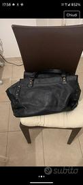 Borsa Postina in pelle morbidissima nera. Con tracolla e corredata di tante tasche all'interno. Lunghezza: cm. 43 Altezza: cm. 45 manico compreso.