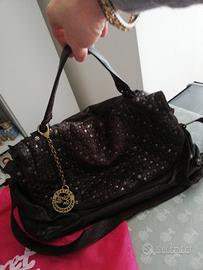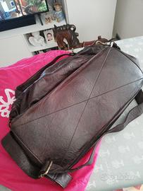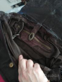Borsa postina vera pelle marrone. Secret Pon Pon. Patta con borchie. Pelle effetto vintage. Due grandi scomparti interni. Due tasche con zip. Tracolla staccabile. Mai usata con dustbag originale. Misure L38cm P17cm H22cm.