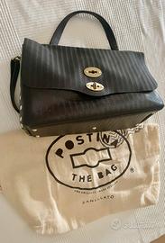 Vendo borsa Zanellato originale, modello Postina medium in vera pelle martellata color marrone, usata pochissimo e in ottime condizioni. Chiusura con doppia patta e bottone, interno foderato con tasche porta oggetti e zip.