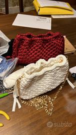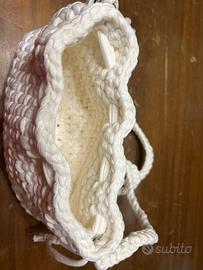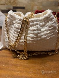 Borsetta bianca a mano fatta a uncinetto misure 25x16 . Fondo 22x5 bianca. Lycra lavabile. Volendo disponibilita della catena oro o argento