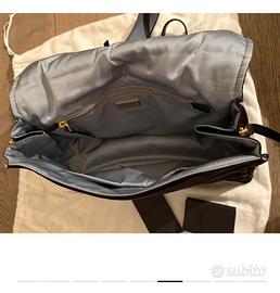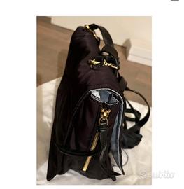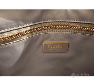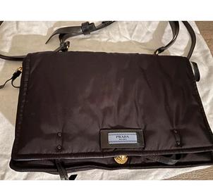 • PRADA, Modello Etiquette. La borsa è realizzata in nylon nero all'esterno ed è azzurra all'interno. La borsa ha due manici di diverse lunghezze a seconda di come viene portata. Infine, presenta due cinghie su entrambi i lati per regolarne l'ampiezza. La borsa è in ottime condizioni