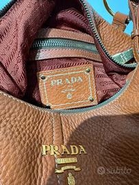 Borsa prada in vitello color cuoio Pelle soffice martellata Hardware dorati (lievemente scoloriti) Ottimo stato generale Vendita di persona zona Napoli e dintorni