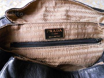 Borsa Prada originale in vera pelle morbidissima (nappa) di colore nero, sottospalla, tre ampi scomparti