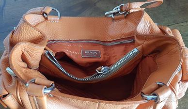 Borsa Prada in pelle martellata colore Arancio con tasche laterali come nuova