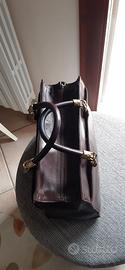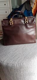 BORSA ORIGINALE PRADA,A MANO , IN VERA PELLE (NAPPA) COLOR MARRONE CIOCCOLATO . MANICI A CATENA E ANELLI COLOR ORO