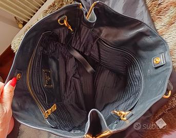 Pelle nera, modello tote grande, con cerniere dorate a lato per aumento capienza, interni illesi, pellame morbidissimo, portabile a mano o a tracolla , meravigliosa...!!!