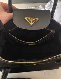 Questa elegante ma pratica borsa nera in nylon e pelle Prada BN2541 è una borsa perfetta per tutti i giorni e conterrà tutti i tuoi elementi essenziali quotidiani. È realizzata in resistente tessuto nylon con il logo Prada e viene fornita con una chiusura a zip sicura, comodi manici in pelle è una sacca (sempre col logo Prada) per conservarla. La borsa è inoltre dotata di una lunga tracolla staccabile per quei giorni a mani libere. Non c'è dubbio che Prada abbia perfezionato l'arte del lusso casual. Già sia all'interno che all'esterno è pulita e bella ovunque; ha solo un piccolo segno ad uno dei manici e qualche graffio nelle borchie alla base. La borsa è stata acquistata nel 2016 con la sua scatola originale e usata solo 3 volte. Purtroppo nel mio ultimo trasloco ho perso il suo certificato originale ma la borsa è in ottime condizioni.