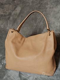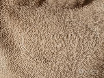 Borsa originale Prada modello Phenix in pelle di vitello color beige/sabbia in buone condizioni. No segni o graffi. Interno in ottime condizioni. Cerniere e chiusure in ottime condizioni. Parti in metallo ben tenute e lucide. Fondo di appoggio senza segni. Possibilità di altre fotografie a richiesta. Dimensioni: Larghezza 15 cm, Lunghezza 40 cm, Altezza 30 cm
