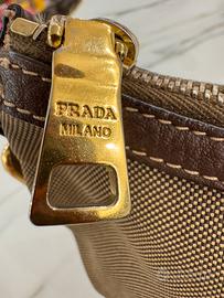 Vendo bellissima Borsa a tracolla Prada, realizzata in tela jacquard marrone, con finiture in pelle e dettagli color oro sulla tracolla. Il design è semplice e casual, il che la rende perfetta per le uscite quotidiane. Tenuta in ottime condizioni.