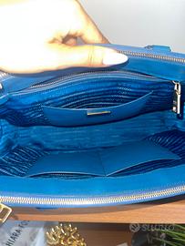 Vendo, per inutilizzo, borsa originale Prada in saffiano color turchese. E’ in ottime condizioni, presenta solo dei lievi segni di usura negli angoli. Munita di tracolla, ma NON di dust bag.