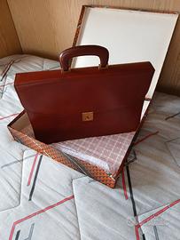 Nazareno Gabrielli , borsa professionale in pelle con due scomparti e finiture in metallo dorato cm 38 x 28 , manico cm 14 . Nuova anche se datata